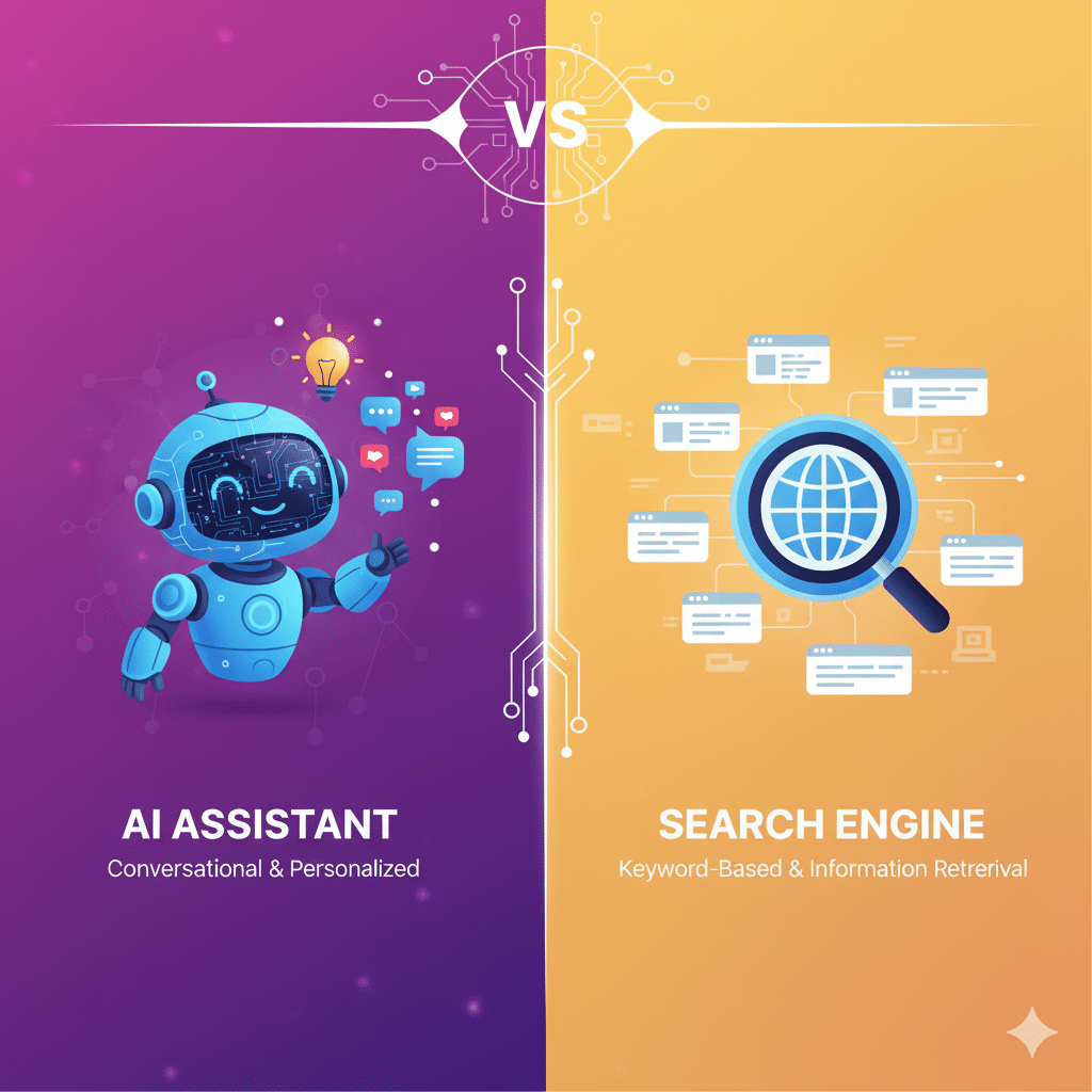 - Transparency: With search engines you can inspect where information comes from by clicking links. With assistants, the ranking logic and source selection are often opaque — you may not know why one company is suggested above another.
